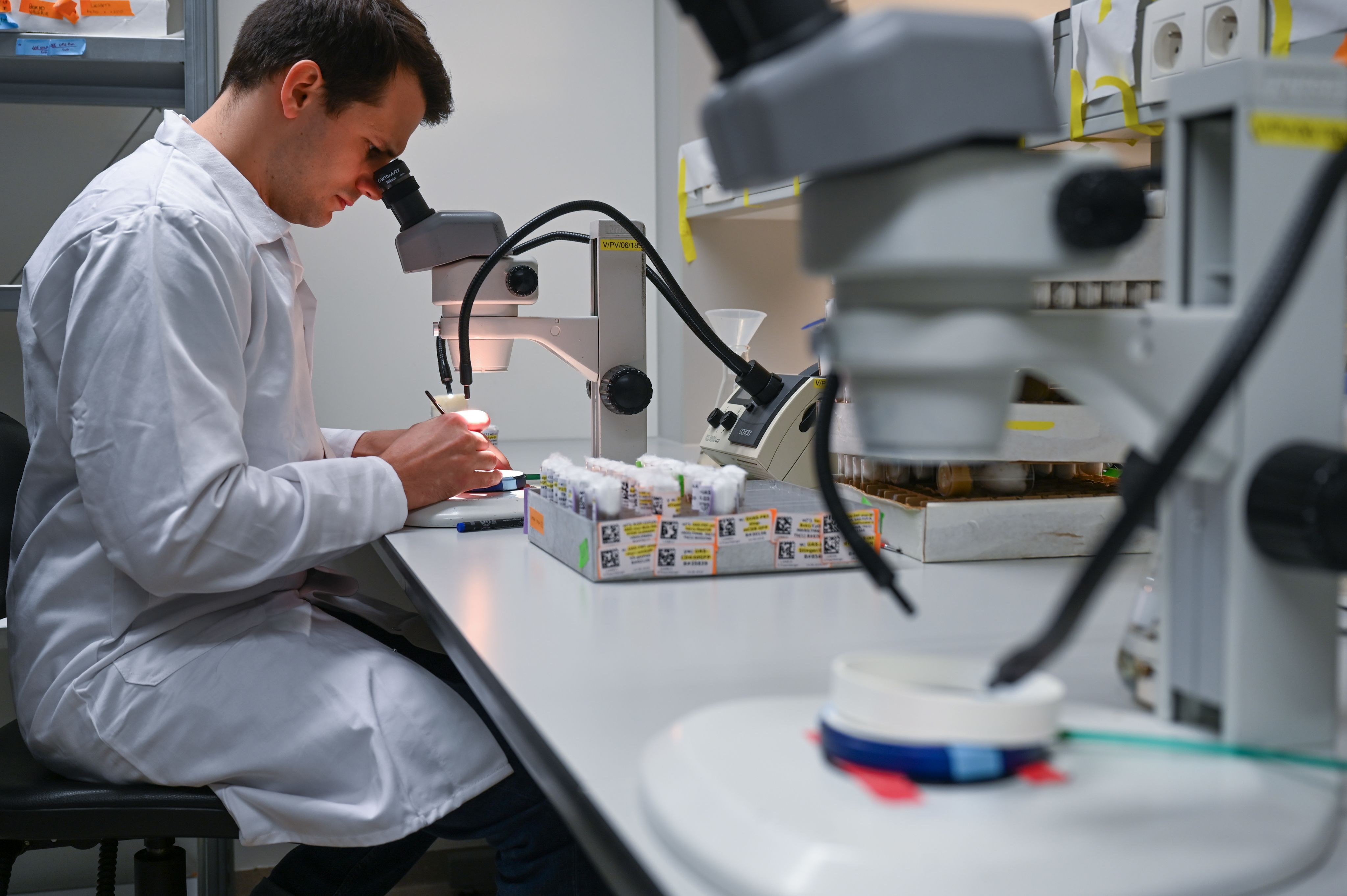Roman Praschberger working in the lab at the VIB-KU Leuven Center for Brain & Disease Research.